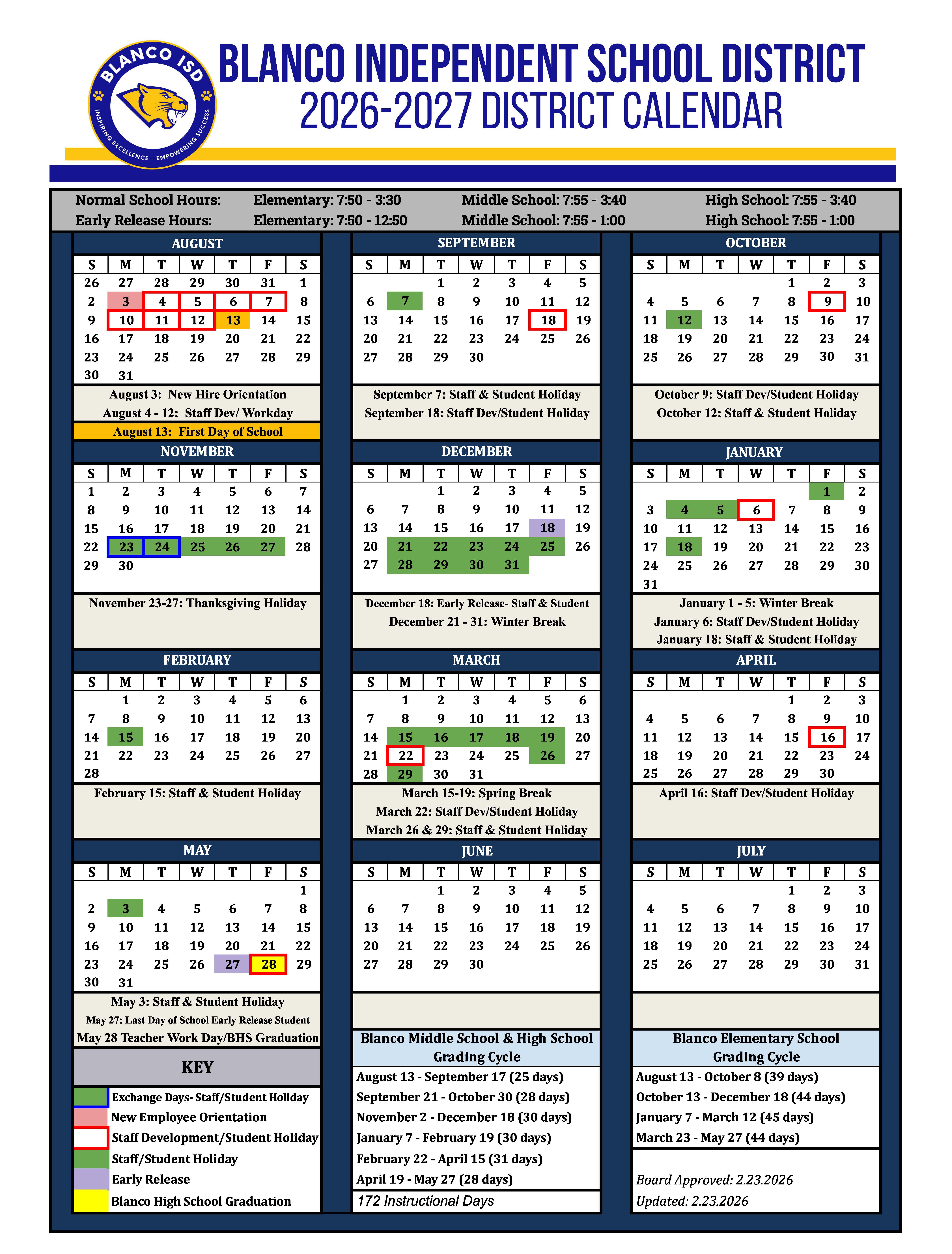 Blanco ISD values inspiration, fostering curiosity, creativity, and a passion for learning. Through dedicated educators and strong community support, we empower students to dream big, overcome challenges, and achieve success. By nurturing a love for learning, we prepare them to impact the world positively.